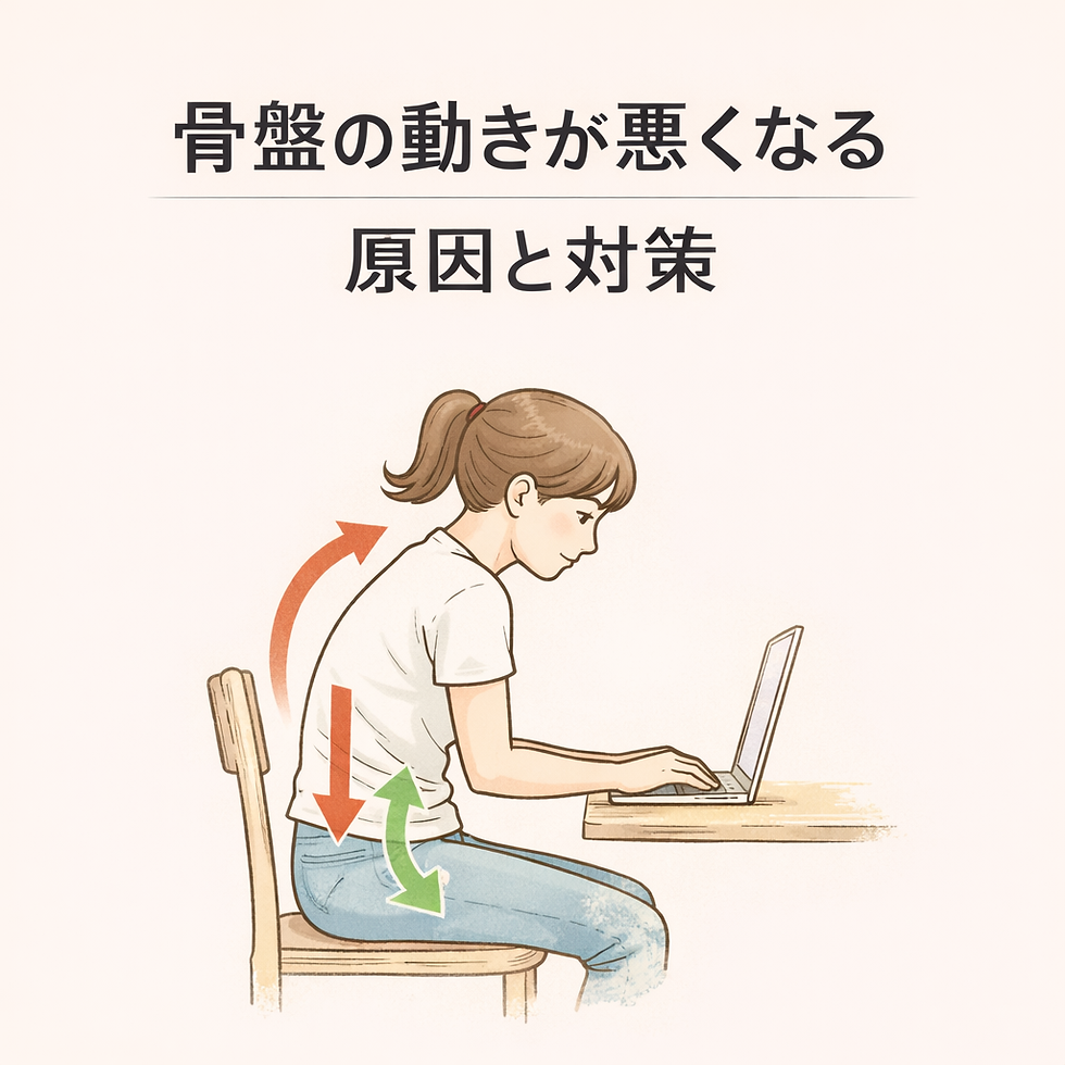 もちろん不調の原因は一つではありません。ただ、骨盤の動きが関与しているケースもあると言われているため、姿勢や生活習慣とあわせて見直すことが大切だと考えられています。